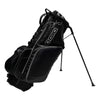 The OGIO Black Orbit Stand Golf Bag has a 9.5" Woode top with integrated handle and a putter pit, two trademark OGIO bag innovations: the Zipperless Ball Pocket and the OGIO Ball Silo, weather-resistant fleece-lined valuables pocket, club dividers, and many different sleeves and zippers. Best of all: OGIO's load-equalizing SHOXX(tm) suspension system distributes the weight of your bag better than ever.