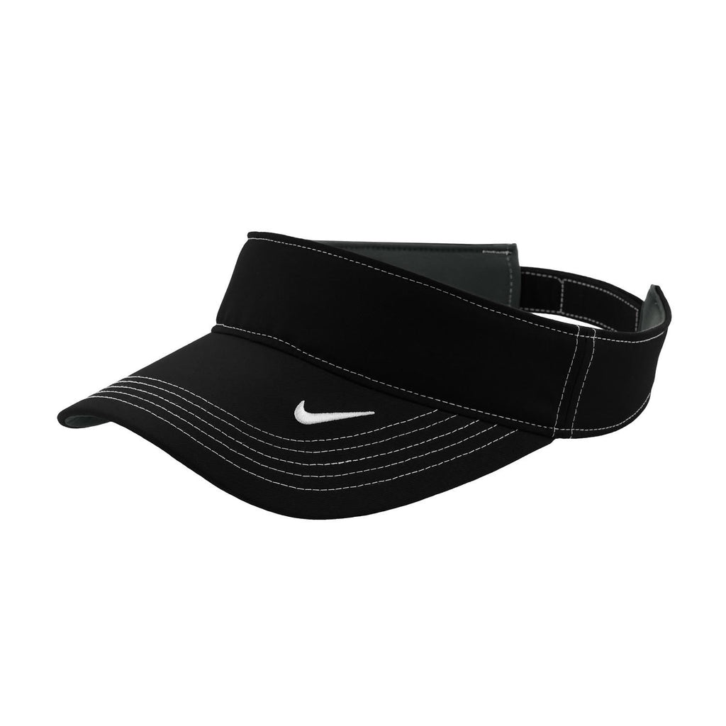The Nike Golf Dri-FIT Black Swoosh Visor is a high-performance visor, made with moisture management technology in the fabric. There is contrast stitching for a modern accent, and a hook and loop closure so that it will fit nicely against your head.