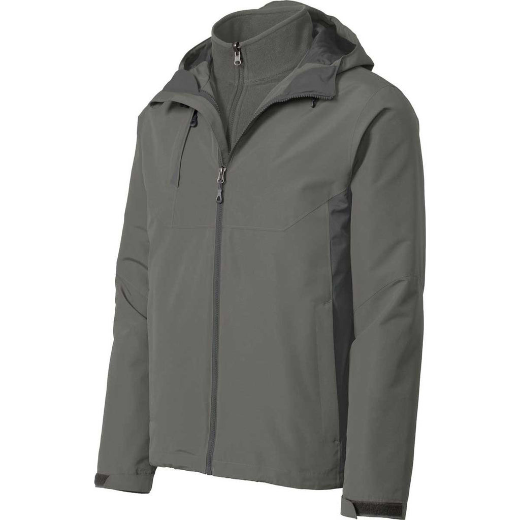 If you're looking for a simple styled jacket that exudes professionalism, look no further than the Port Authority Men's Rogue Grey/Grey Steel Merge 3-in-1 Jacket. Layer the colorblock shell and microfleece inner jacket to ensure maximum protection against harsh winter weather elements. The colorblock polyester shell attaches to an adjustable three-panel hood and locking drawcord to keep you bundled up. Front zippered pockets act as mobile storage units for your business documents and electronic devices. Adjustable tab cuffs and loop closures offer you more control of the jacket's fit. Attach a custom logo to the jacket and enjoy more exposure for your company at civic events.