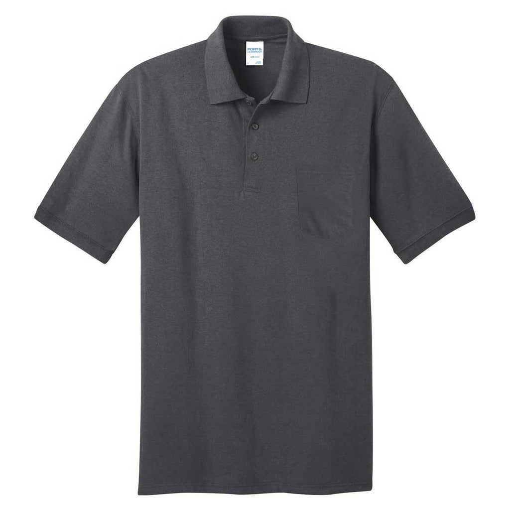 Inspired by minimalist architecture, this Port & Company Men's Charcoal Core Blend Jersey Knit Pocket Polo is a great answer to warm-weather uniforming shirts. It boasts a lightweight and comfortable construction with a balanced cotton-polyester blend. A pocket adds character to this casual polo while a 3-button placket ensures comfort fit. It can be easily paired with contrasting chinos, cargoes or denim for an effortless look and style. Double-needle stitching hem means durability. Spruce up your company's professionalism by having your logo on this polo that lets individuals know who to contact if they’re interested in reaching out to your business.