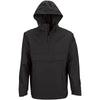 Take advantage of the large imprint area on the North End Men's Black Excursion Intrepid Lightweight Anorak to place your corporate logo. After turning heads by walking by customers wearing the sleek lightweight anorak, your customers immediately recognize and remember your custom logo. The lining of this anorak consists of 100% polyester taffeta in the sleeves and lower front body. Keep your head warm during cold spells by pulling the adjustable shock cord attached to the hood. The highly breathable anorak works as an outer layer over a heavy jacket or simply an outer garment pulled over a t-shirt on humid days.