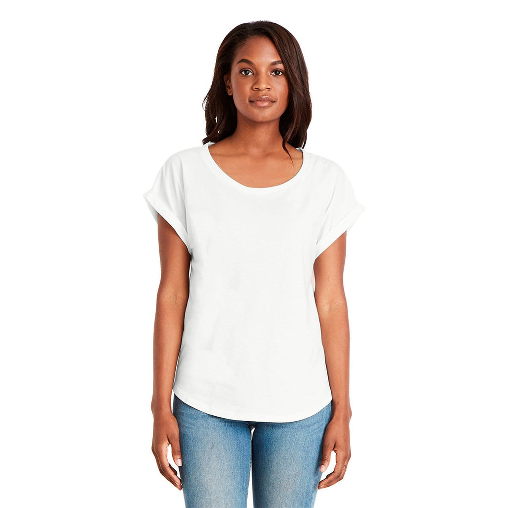 When you want your company's logo to make a huge impact with female customers, place it on a Next Level Women's White Dolman With Rolled Sleeves. It has a style that is in high demand. The rounded scoop neck and rolled short sleeves are in fashion and extremely desirable. When you use this shirt as a promotion or give-away you will be perceived as a thoughtful and professional on all levels. It features a relaxed fit and the fabric has been pre-laundered. It also has a tear-away label. Available in sizes XS to 2XL you can choose from black, heather grey, red, turquoise, and white.