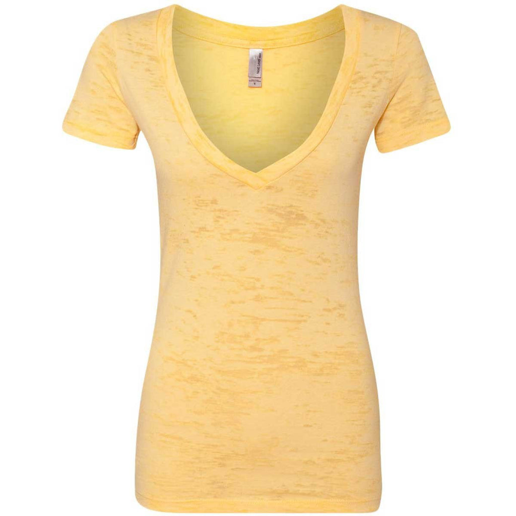 Getting a tee shirt to feel comfortable isn't always easy. You need quality fabric, exceptional design, and even enough sartorial know-how to feel confident wearing it out and about. With the Next Level Women's Banana Cream Burnout Deep V Tee, however, you get it all in one package—all with the nice touch of a deep V neck. Simply add your custom logo to this deep V tee to experience the most possible in brand awesomeness from a single shirt—and we at Merchology can help you out with that. Unlike the normal crewneck tee, you'll find more versatility here for repping your brand.