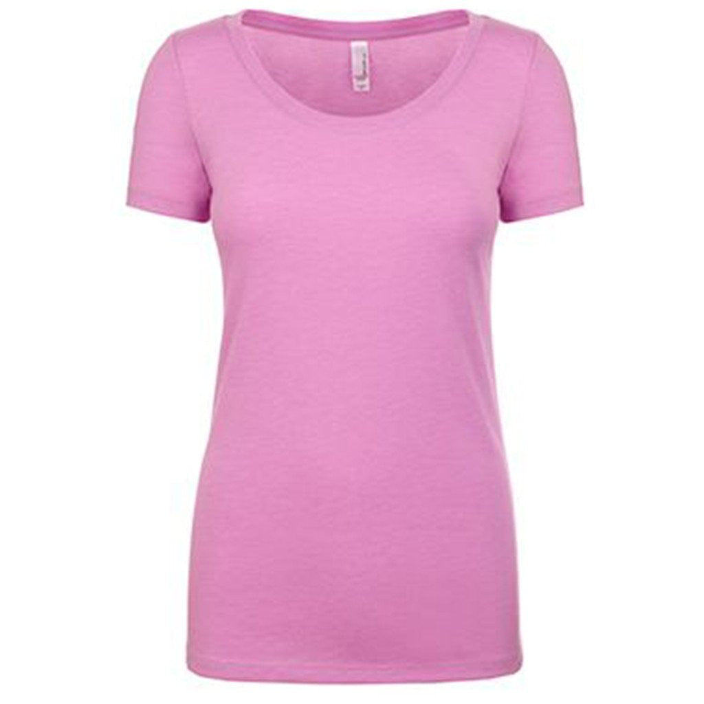 there's the usual tee shirt, and then there's the scoop neck. The two are not as alike as you may think. Sure, the tee shirt is a casual option. So is what you see here. But what you see here is great for layering, for more advanced sartorial choices, and simply to enjoy around the house or while out and about. Let's see any ordinary tee do what the Next Level Women's Vintage Lilac Triblend Scoop Tee can do, then we'll be impressed. All that's missing from this picture? Your own custom logo put right on the front so you can rep your brand while you rep some serious style.