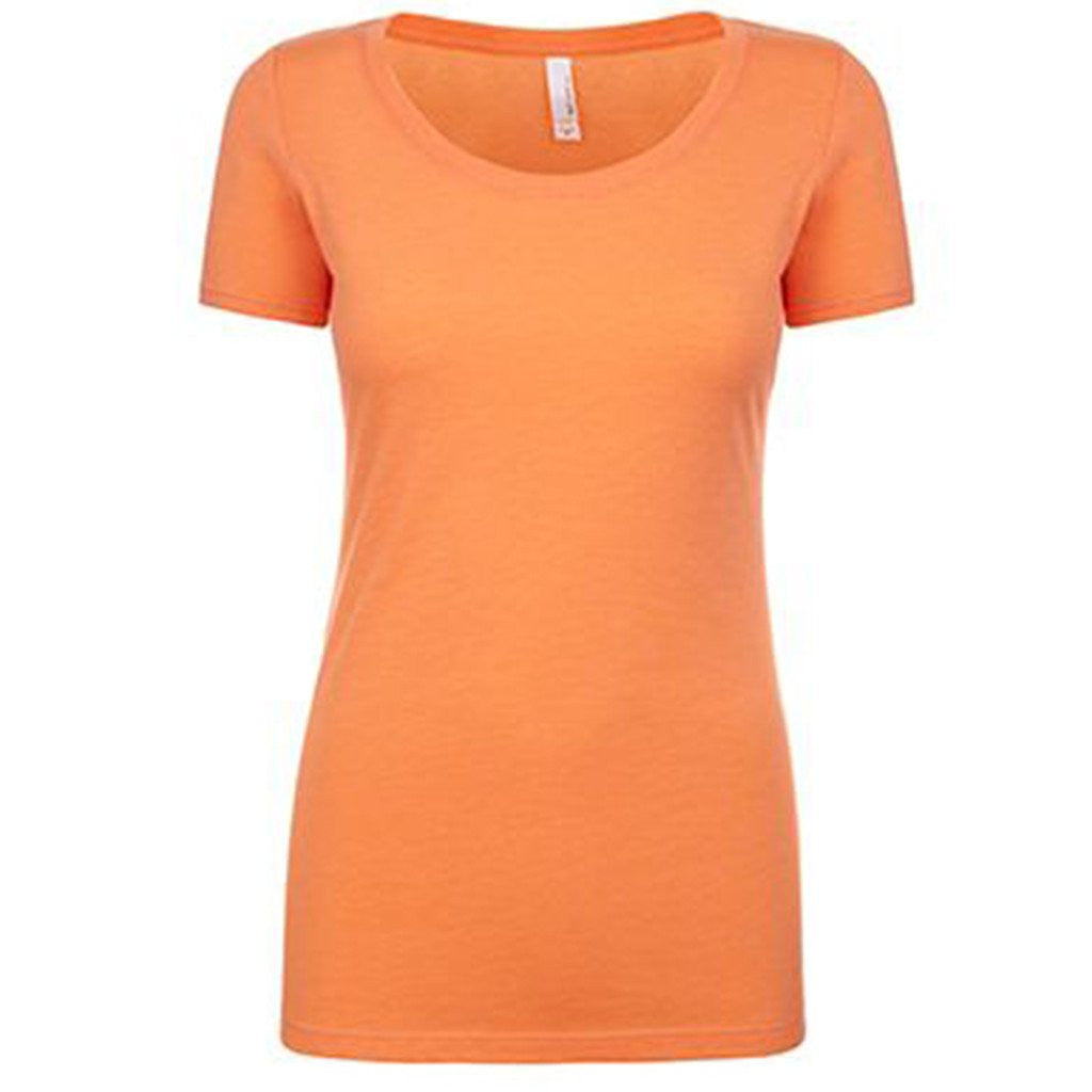 there's the usual tee shirt, and then there's the scoop neck. The two are not as alike as you may think. Sure, the tee shirt is a casual option. So is what you see here. But what you see here is great for layering, for more advanced sartorial choices, and simply to enjoy around the house or while out and about. Let's see any ordinary tee do what the Next Level Women's Vintage Light Orange Triblend Scoop Tee can do, then we'll be impressed. All that's missing from this picture? Your own custom logo put right on the front so you can rep your brand while you rep some serious style.