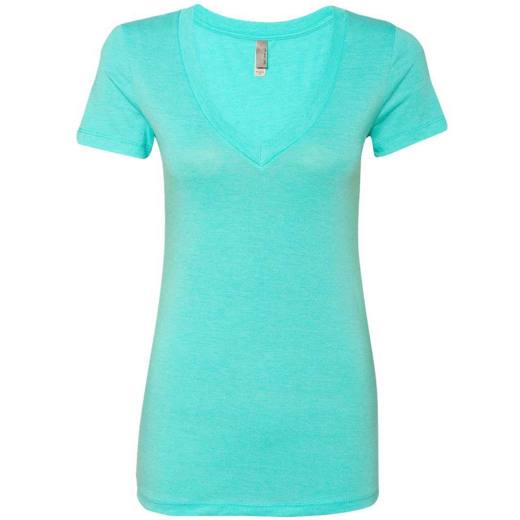Adding another plain ol' crewneck tee to the outfit isn't always exciting. If you've ever agreed with that statement, perhaps it's time to switch to this Next Level Women's Tahiti Blue Triblend Deep-V Tee. Not only does it offer a degree of style that you can't get with the usual tee, but it has all the comfort and carefree attitude of a crewneck. If only all shirts could give you an added layer of interest in your outfit without feeling like they added another layer of discomfort as well. But thankfully, v-necks like this can rescue a drab wardrobe in a hurry. With Merchology, you can add a custom logo to take this v-neck to the next level.