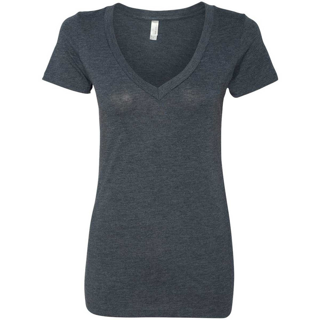 Adding another plain ol' crewneck tee to the outfit isn't always exciting. If you've ever agreed with that statement, perhaps it's time to switch to this Next Level Women's Vintage Navy Triblend Deep-V Tee. Not only does it offer a degree of style that you can't get with the usual tee, but it has all the comfort and carefree attitude of a crewneck. If only all shirts could give you an added layer of interest in your outfit without feeling like they added another layer of discomfort as well. But thankfully, v-necks like this can rescue a drab wardrobe in a hurry. With Merchology, you can add a custom logo to take this v-neck to the next level.