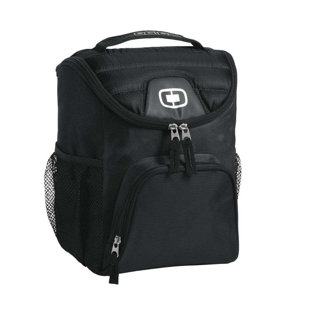 This can cooler is made up of a very durable 600D polyester/420D diamond dobby/PEVA lining blend that is also easy to care for. It has an open top design, top handle, and dual accessory holders. The insulated main compartment can hold six 12 oz. cans. There is also a front zippered pocket for you to stash any more essentials. Browse through a variety of great colors to purchase the OGIO Black Chill 6-12 Can Cooler in!Decoration location: Front pocket