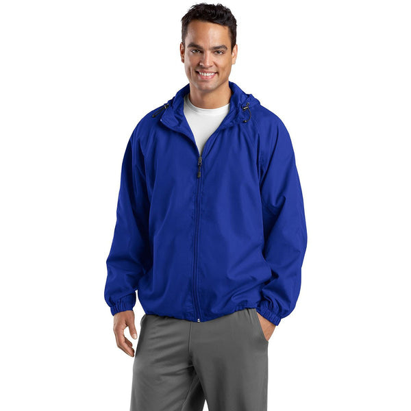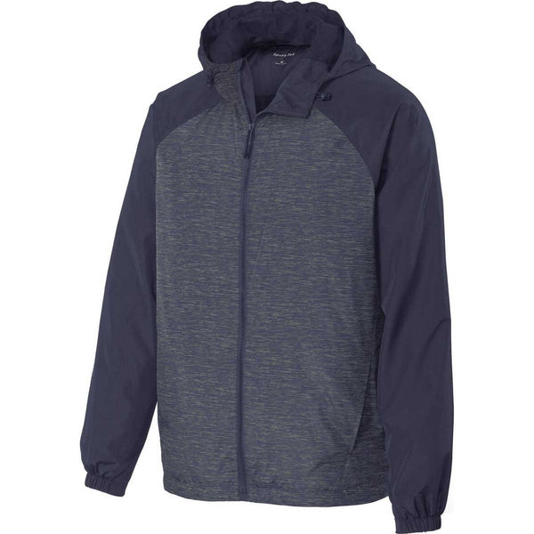 Sport-Tek Men's True Navy Heather/True Navy Colorblock Raglan Hooded Wind Jacket
