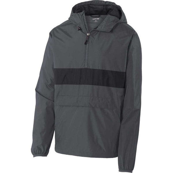 Sport-Tek Men's Black Heather/Black Heather Colorblock Raglan Hooded Wind Jacket