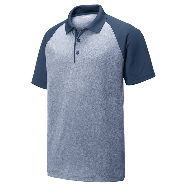 Sport-Tek Men's Pond Blue Heather/Pond Blue PosiCharge RacerMesh Raglan Heather Block Polo