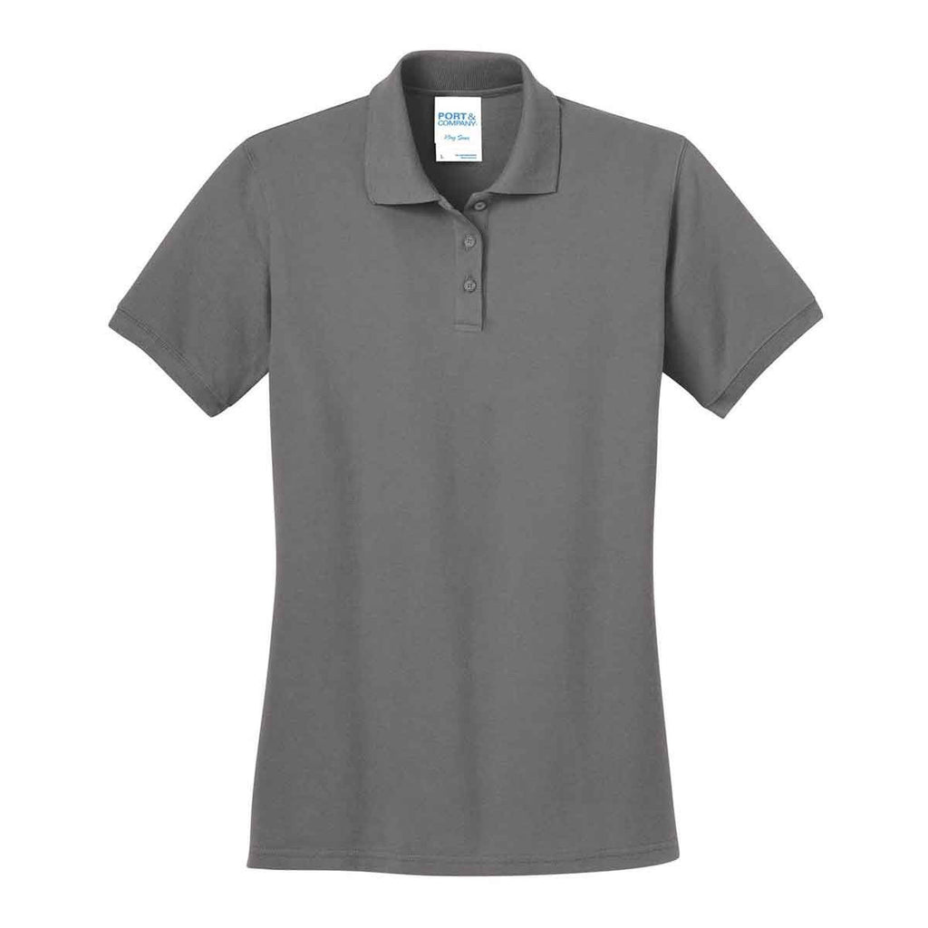 This Port & Company Women's Medium Grey Ring Spun Pique Polo brims with classic appeal. Pure ring spun cotton feels luxurious and a comfortable contoured fit makes it the perfect option for a girl on the move. Timeless polo details like button placket, dyed-to-match buttons, ribbed collar and cuffs bring sweet appeal and day-long comfort. It features double-needle stitching for durability. Treated with Soil Release finish for easy cleanups. Outfit this classic polo with a customized logo to promote the corporate identity of your company or organization to make your uniformed crew stand out from the crowd and to gain brand consistency and credibility.