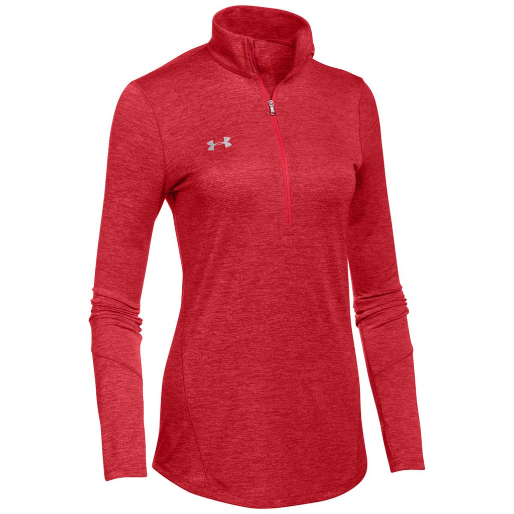 Turn heads at the next industry convention by ordering the custom logoed Under Armour Women's Red Novelty 1/2 Zip. The fashionable corporate apparel presents double dyed twist print that will captivate your professional peers at networking events. Attach your corporate logo on the large imprint area to take advantage of the attention. Thumbholes and wrapped seams add some new and interesting details to this layering piece. Rugged polyester resists rips and tears to deliver superior long lasting performance. The super soft fabric wicks away moisture to deliver all day comfort in humid conditions.