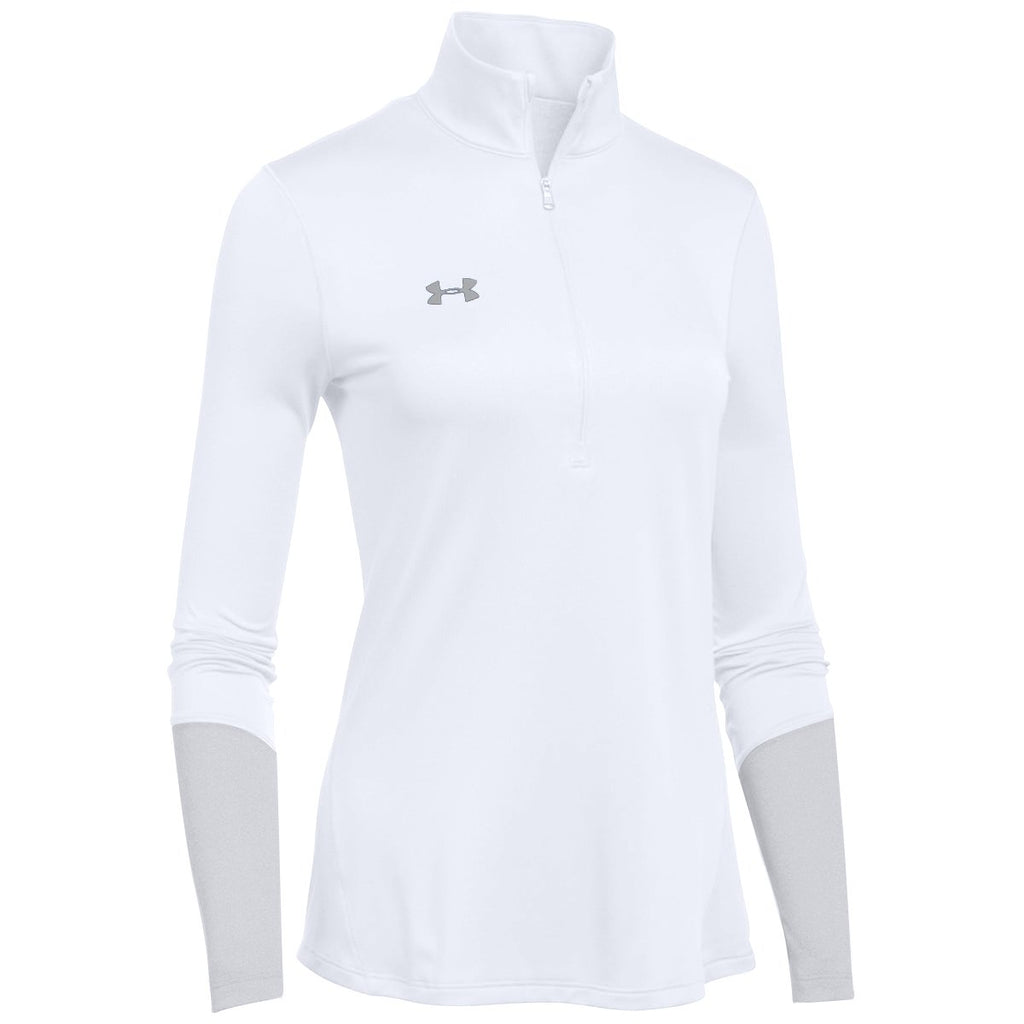 Reward the members of your hard working team by giving away the custom Under Armour Women's White/Elemental Light Heather Locker 1/4 Zip. Designed with 100% polyester, the stylish quarter zip withstands the punishment delivered by frequent use, and maintains its look. Ultra soft fabric feels smooth against the skin to give you the ultimate in comfort for a long day at the office. Add a custom logo on the large imprint area to reach more potential customers at business seminars. Your team will enjoy receiving this quarter zip as a piece of corporate apparel they will enjoy wearing. Simply add your logo and you're ready to go!