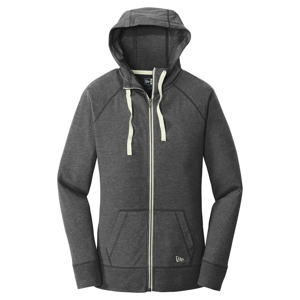 When the weather turns blustery, put on the embroidered New Era Women's Black Heather Sueded Cotton Full Zip Hoodie to add another layer of corporate apparel. The three-panel hood withstands strong winds to keep you comfortable throughout active days outdoors. Highly durable polyester resists the types of rips and tears that diminish the performance of other hoodie styles. The contrast metal zipper quickly moves up and down the hoodie to help you adapt to rapidly changing weather conditions. Attach your company logo on the large imprint area to expand your brand's power at industry conventions.