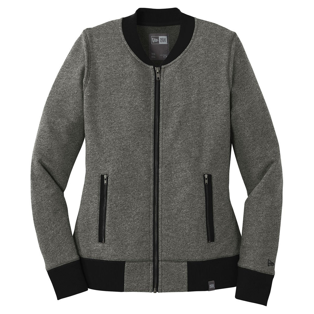 Match our national pastime with fashionable corporate apparel and you have the embroidered New Era Women's Black Twist/Black French Terry Baseball Full-Zip. Exposed black nickel zippers and contrast rib knit cuffs up the fashion ante for corporate apparel. The chic full-zip contains a blend of cotton and polyester to create a smooth fabric that withstands the punishment delivered by participating in outdoor activites. Sueded French terry design will turn heads at the next corporate event. Make sure to keep customer prospect eyes glued to the elegantly designed full zip by adding your corporate logo on the large imprint area.