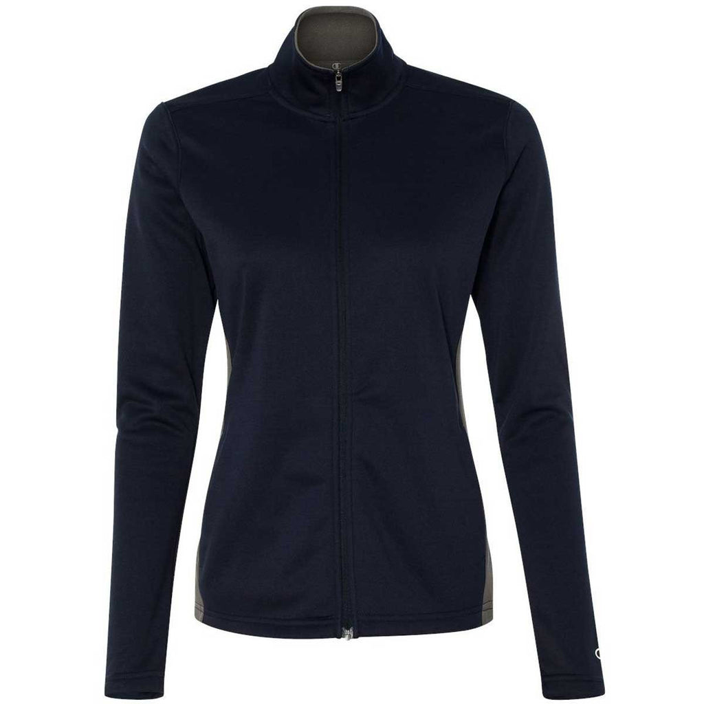 When the weather turns cold, you want to wear a jacket that keeps you warm, without weighing you down. The Champion Women's Navy/Stone Grey Performance 5.4-Ounce Colorblock Full-Zip Jacket contains 100% lightweight polyester fleece that warms you on the coldest days of the year. Champion designed the full-zip jacket to include a two-ply collar and plush contrast lining for additional comfort. The moisture wicking fabric keeps your skin dry, which is important if you wear multiple layers in cold weather. Contrasting side panels include side entry pockets for you to store electronic devices. Attach your company logo to this embroidered apparel to increase brand awareness.