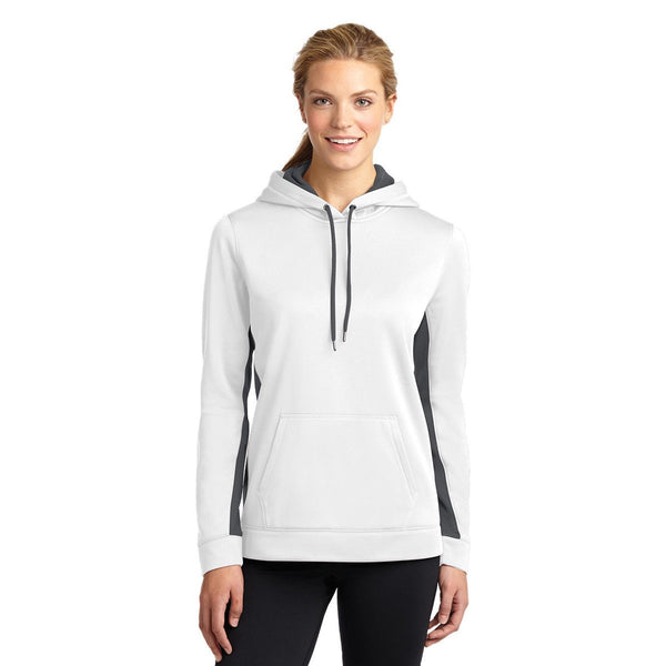 Sport-Tek Women's White/Dark Smoke Grey Sport-Wick Fleece Colorblock Hooded Pullover