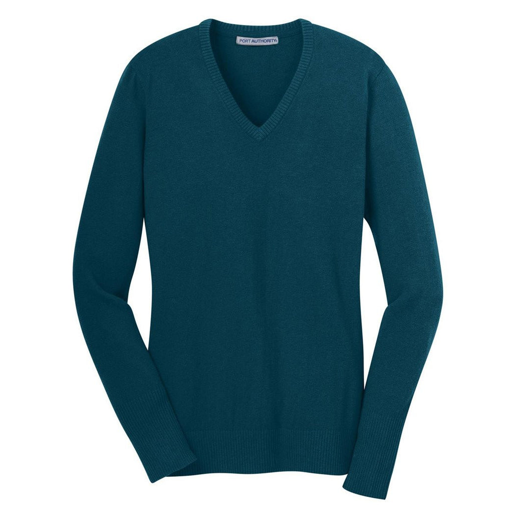 A V-neck should be warm while also retaining breathability a 60/40 cotton/nylon fabric would do the job. And it should be stylish, never baggy, with a rock-solid fit around the hips and wrists: a rib-knit cuff and hem would help there. And the V-neck should be rib-knit too, in order to ensure a sharper, crisper look. The Port Authority Women's Moroccan Blue V-Neck Sweater is no ordinary online V-neck; instead, it is exactly what you've been looking for. Add your company's logo to the front for a stylish, sophisticated employee uniform.