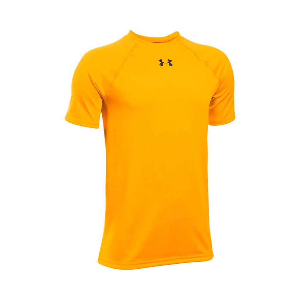 Put smiles on the faces of the members of your dedicated team of high achievers by handing out the stylish Under Armour Boy's Steeltown Gold Locker Tee 2.0. Your commitment to sharing with the sons of your employees goes a long way towards creating a motivated staff. Updated set-in sleeves give boys more arm movement flexibility to snare line drives. Proprietary Under Armour Tech fabric produces an ultra soft feel to deliver all day supreme comfort. The rugged fabric also withstands the punishment delivered by active boys. Moisture wicking technology keeps the skin comfortably cool throughout a weekend baseball tournament.