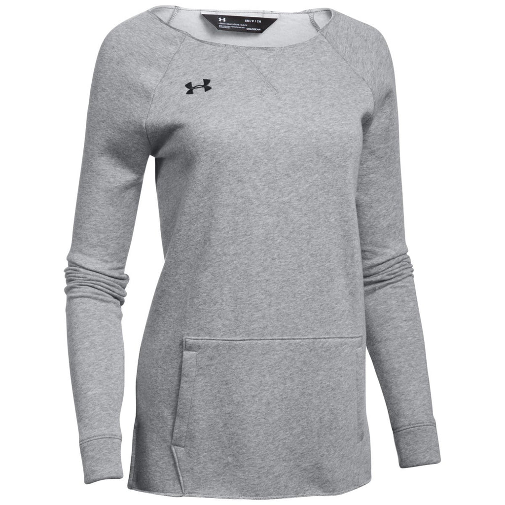 Turn the next company recruiting event into a big win by ordering the custom logoed Under Armour Women's True Grey Heather Hustle Fleece Crew. The sleek crew works as well as corporate apparel on a casual day at the office, as it does when you're lounging around on your day off. Attach your corporate logo to connect your company with high quality products. The brushed fleece interior traps body heat to ensure you remain warm on chilly days at the office or outside. Switch up your usual corporate apparel with this custom fleece crew from Under Armour.