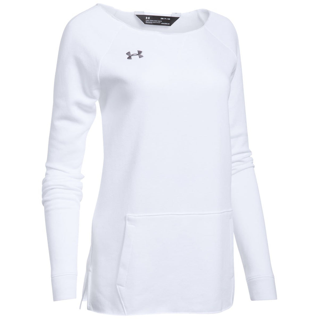 Turn the next company recruiting event into a big win by ordering the custom logoed Under Armour Women's White Hustle Fleece Crew. The sleek crew works as well as corporate apparel on a casual day at the office, as it does when you're lounging around on your day off. Attach your corporate logo to connect your company with high quality products. The brushed fleece interior traps body heat to ensure you remain warm on chilly days at the office or outside. Switch up your usual corporate apparel with this custom fleece crew from Under Armour.