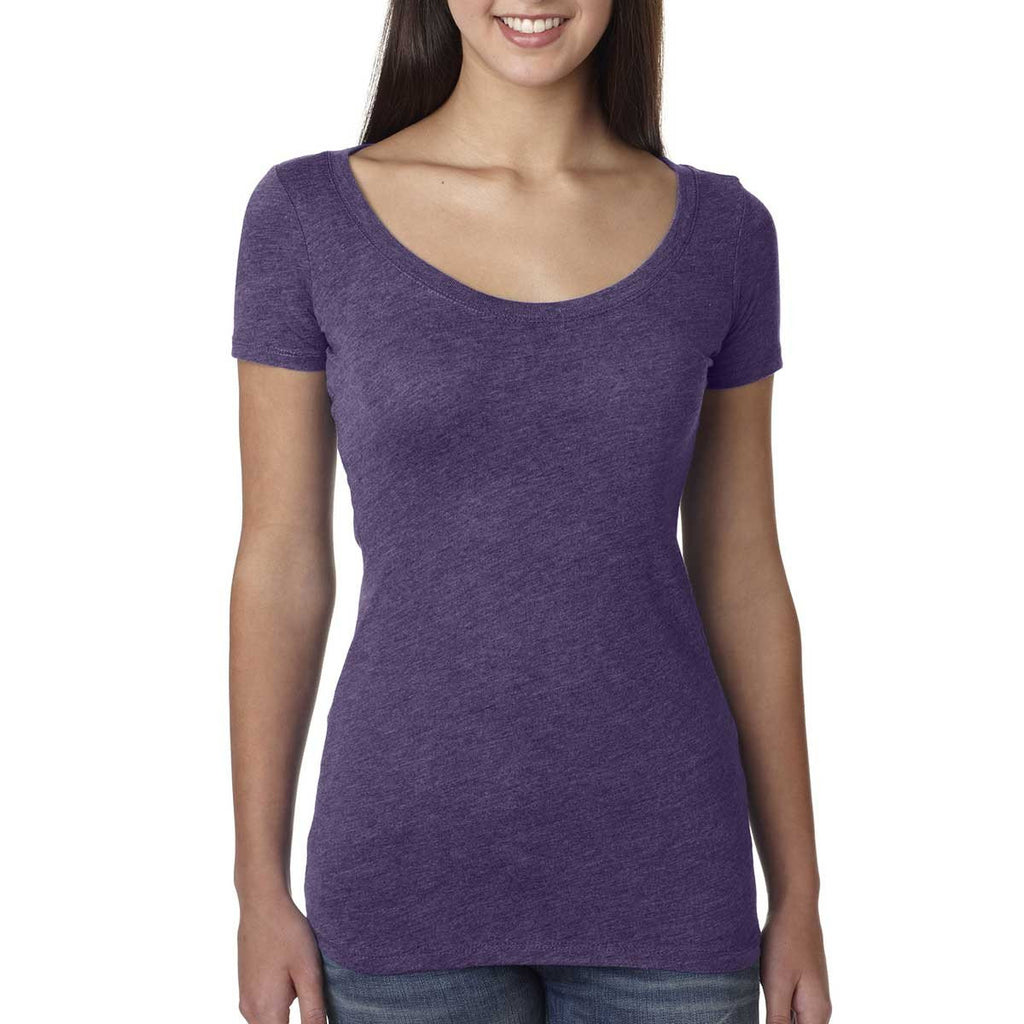 there's the usual tee shirt, and then there's the scoop neck. The two are not as alike as you may think. Sure, the tee shirt is a casual option. So is what you see here. But what you see here is great for layering, for more advanced sartorial choices, and simply to enjoy around the house or while out and about. Let's see any ordinary tee do what the Next Level Women's Purple Rush Triblend Scoop Tee can do, then we'll be impressed. All that's missing from this picture? Your own custom logo put right on the front so you can rep your brand while you rep some serious style.