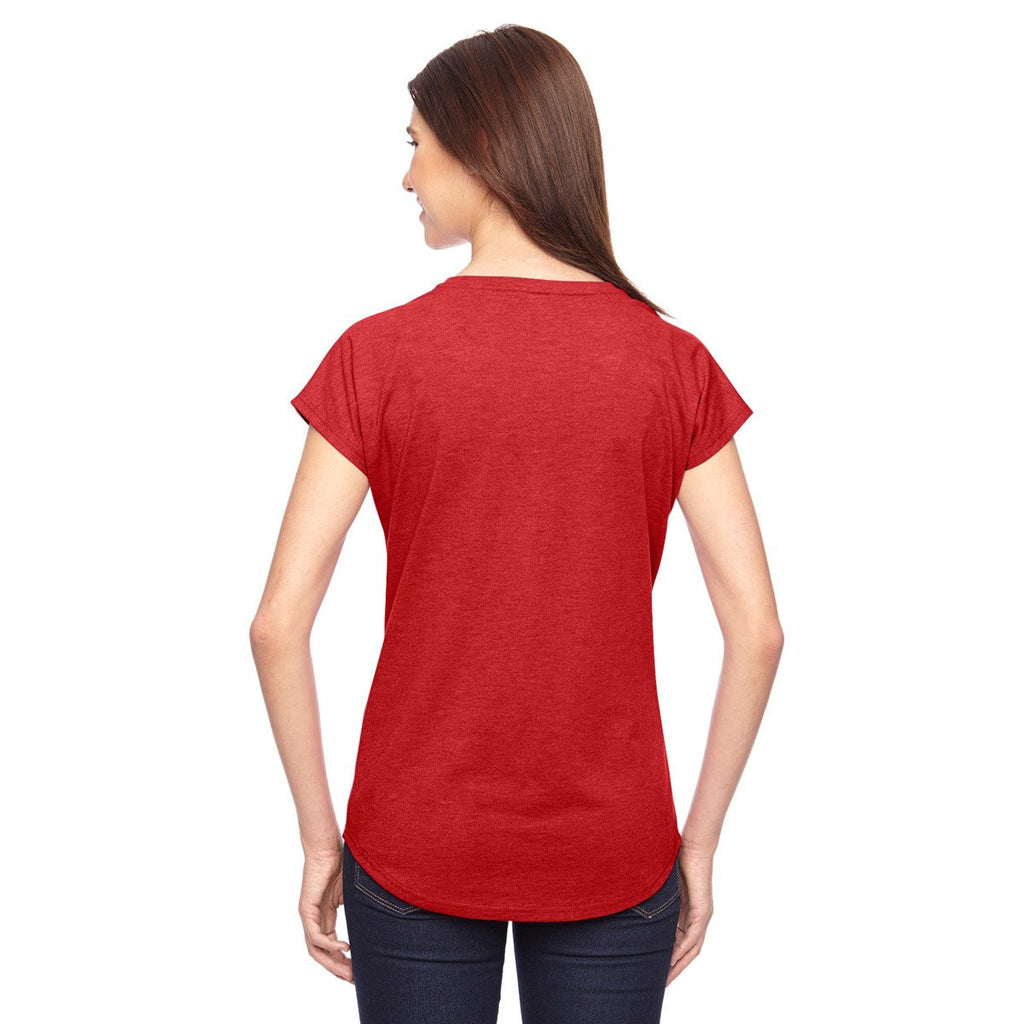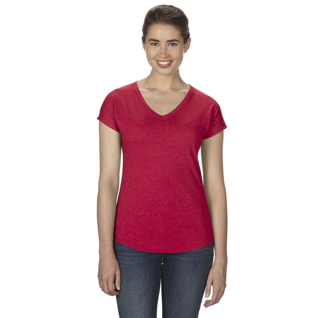 V-neck t-shirts stand out in the crowded field of corporate apparel, which makes the Anvil Women's Heather Red Triblend V-Neck T-Shirt a must have addition for any fashion conscious professional. Cotton, polyester, and rayon produce a multi-purpose t-shirt that you can wear out for a night on the town or underneath a snappy dress shirt. The preshrunk fabric never shrinks after countless wash and dry cycles. Side seam construction ensures you never experience rips and tears in the fabric at the worst possible times. Add your company logo to expand awareness of your brand in the community.