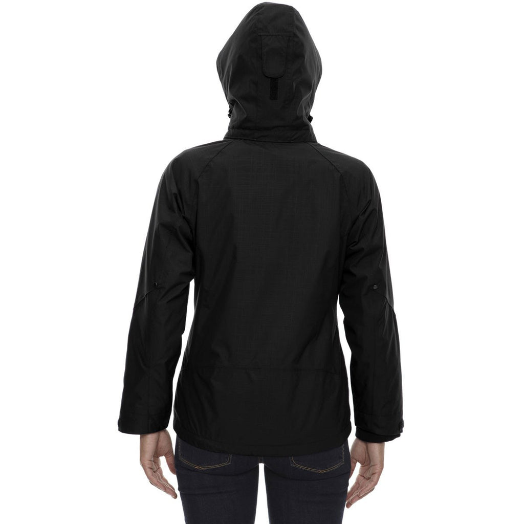 One-hundred percent polyester twill provides the best of both fashion worlds for the North End Women's Black Caprice 3-In-1 Jacket With Soft Shell Liner . Highly durable polyester keeps this jacket in mint condition for years to come, while the soft twill enhances your comfort zone. Wear this jacket outdoors during a long walk or at the office to impress professional peers. Contrast stitching on the flat reflective piping accentuates the already stylish North End Women's Black Caprice 3-In-1 Jacket With Soft Shell Liner . A custom logo added to the jacket boosts your company's profile in the community. With a corporate logo attached to the large imprint area, you create the perfect company gift for high achieving employees and loyal patrons of your business.