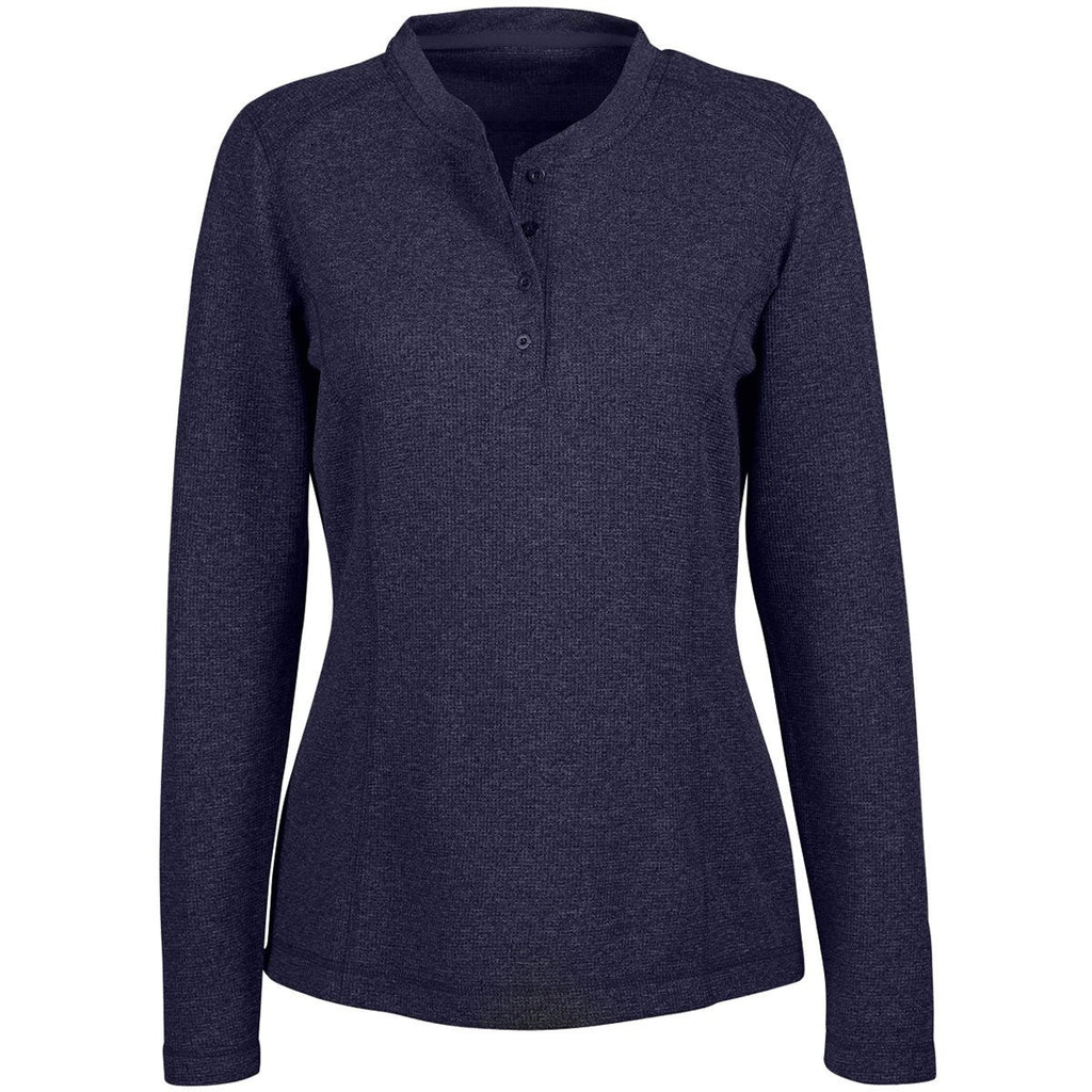 Wear the North End Women's Navy Excursion Nomad Performance Waffle Henley and never have to worry about odors ruining your stylish fashion statement. Anti-microbial properties keep this outer garment smelling fresh throughout the long day. Moisture wicking technology quickly removes the sweat that builds up on your skin. Metal buttons located at the placket augment the appearance of the North End Women's Navy Excursion Nomad Performance Waffle Henley. Add your corporate logo to the chest area and watch the awareness of your company increase in the community. Even better, give the Henley to employees during the holidays to boost morale and brand awareness.