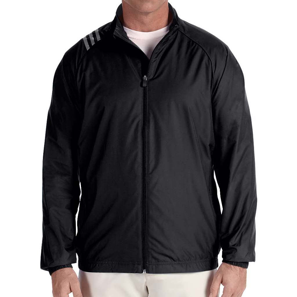 This jacket is for those serious golfers, the ones who refuse to acknowledge rain forecasts and refuse to be a pawn of the weatherman. The Adidas Golf Men's Black 3-Stripes Full-Zip Jacket offers full weather protection, resisting both wind and water, while not neglecting your neck with its full zip feature.