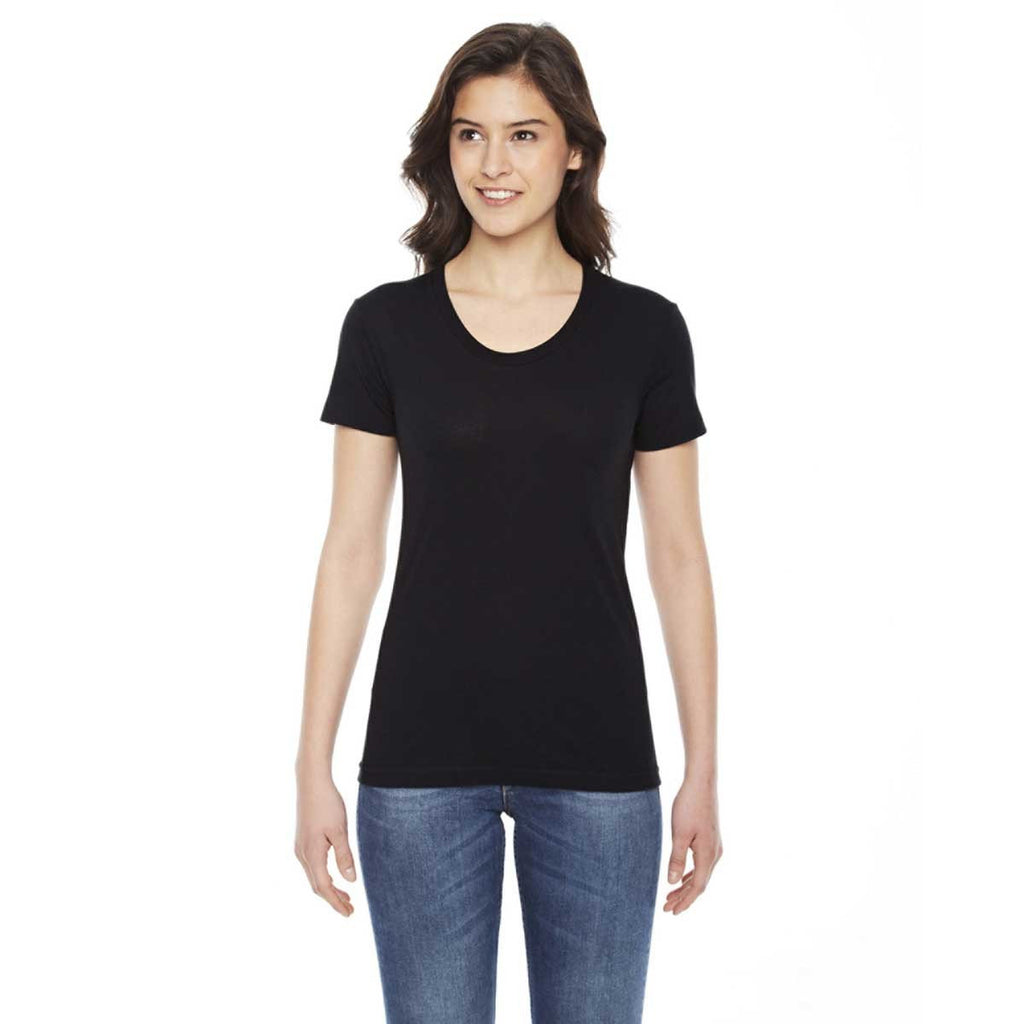 Ever wanted a comfortable T-shirt that didn’t try to be something it’s not? We’ve got a T-shirt that knows what it is and does it extremely well. This T-shirt is comfortable thanks to a 50/50 poly-cotton blend —which is exactly what a tee should be. It’s form fitting, with a durable rib neckband and comfortable shoulders—exactly what a tee should be. The only thing this American Apparel Women's Black Poly-Cotton Short-Sleeve Crewneck is missing to become the ideal T-shirt is your own custom logo printed on the front.