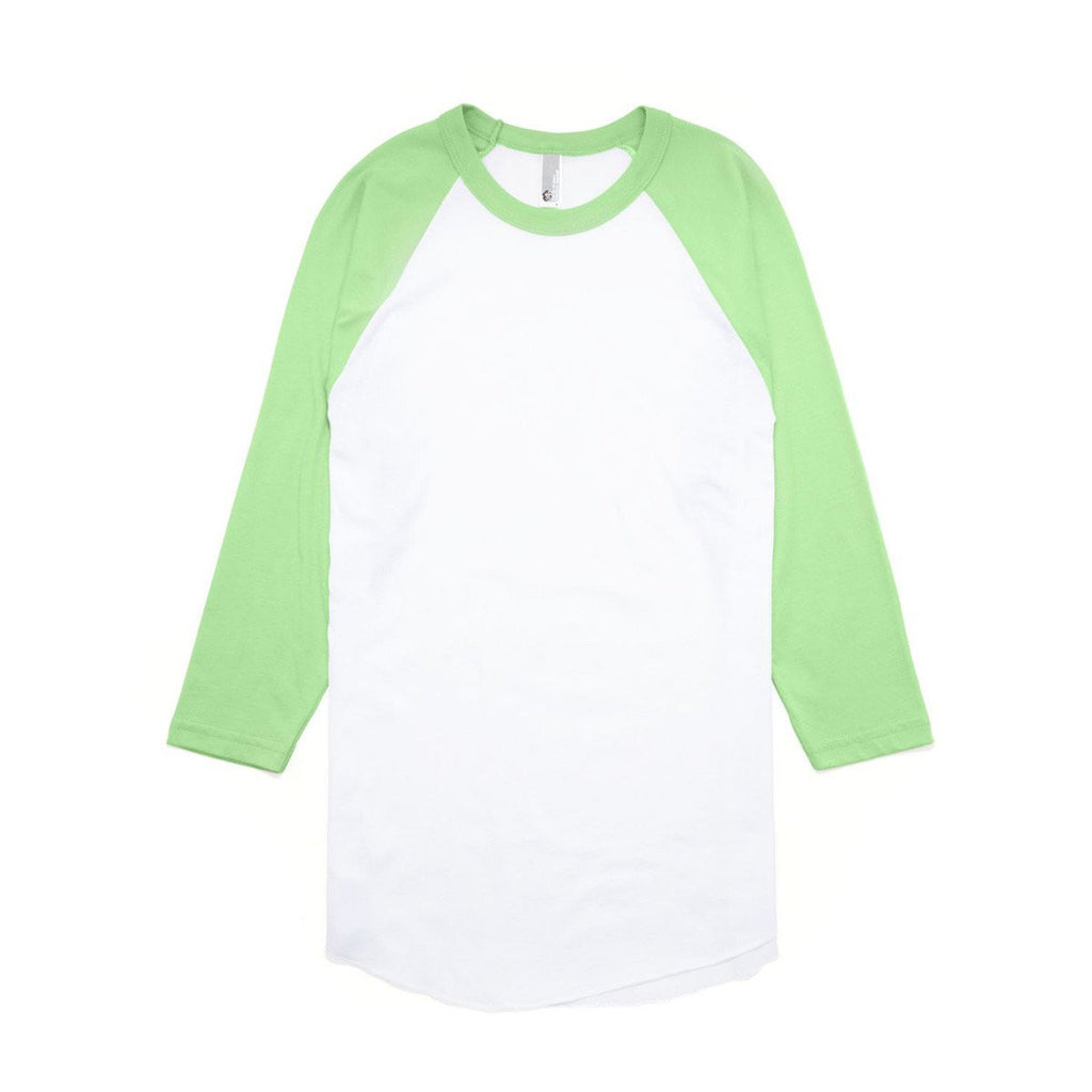 There’s nothing that says “I’m up for the weekend” quite like a baseball raglan tee. Of course, you don’t want just any baseball tee to make your weekend; you only want the very best. For that we offer the American Apparel Unisex White/Neon Green Poly-Cotton Baseball Raglan Tee. At fifty-fifty combed cotton and polyester, it’s comfortable enough for the hot days and durable enough for many days. It makes for a great canvas for your custom printing, whether you’re building an actual business out of your team or building a team out of your business, or simply having a team-building activity that the family can enjoy.