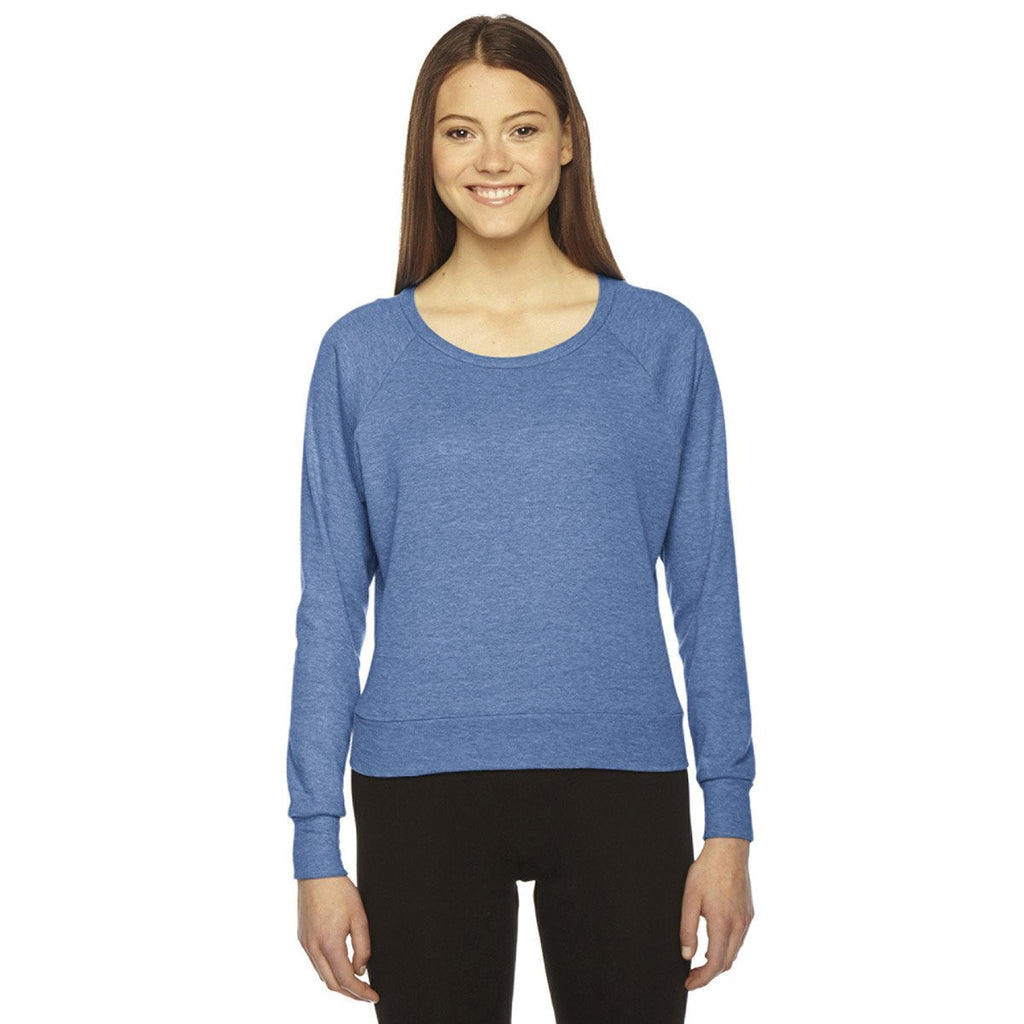 Ladies, have you ever wanted to add your custom printing and logo to a shirt that you’ll actually wear on a regular basis? We think we’ve found a prime candidate for your next custom printing: the American Apparel Women's Athletic Blue Triblend Lightweight Raglan Pullover. This cotton-polyester-rayon blend features a shape-retaining kind of fit that also offers the comfort of cotton. The raglan sleeves are warm and cozy on chilly days—but not so insulating that they wear you out on the more temperate days. Since it’s loose-fitting on top and a little more cozy around the waist, you’ll be able to put this on easily and feel comfortable knowing you look good no matter where you are.