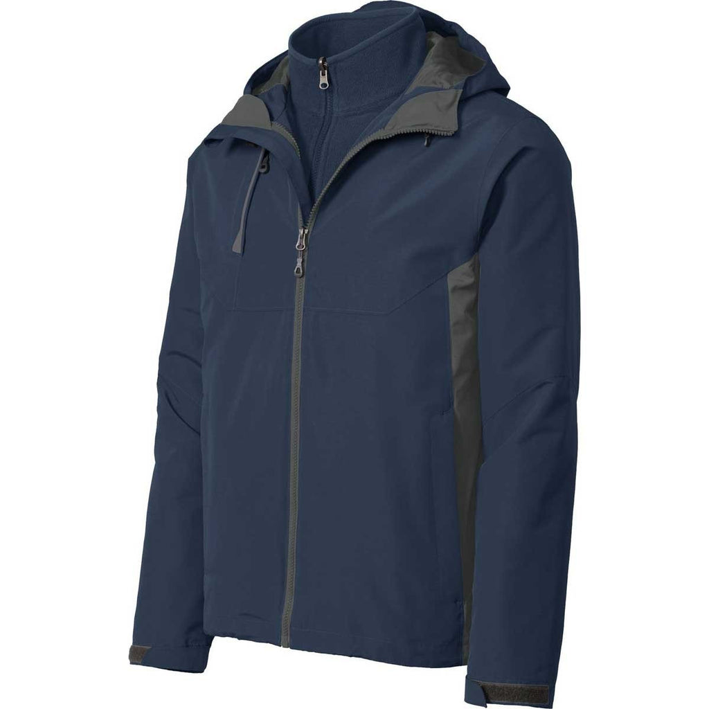 If you're looking for a simple styled jacket that exudes professionalism, look no further than the Port Authority Men's Dress Blue Navy/Grey Steel Merge 3-in-1 Jacket. Layer the colorblock shell and microfleece inner jacket to ensure maximum protection against harsh winter weather elements. The colorblock polyester shell attaches to an adjustable three-panel hood and locking drawcord to keep you bundled up. Front zippered pockets act as mobile storage units for your business documents and electronic devices. Adjustable tab cuffs and loop closures offer you more control of the jacket's fit. Attach a custom logo to the jacket and enjoy more exposure for your company at civic events.
