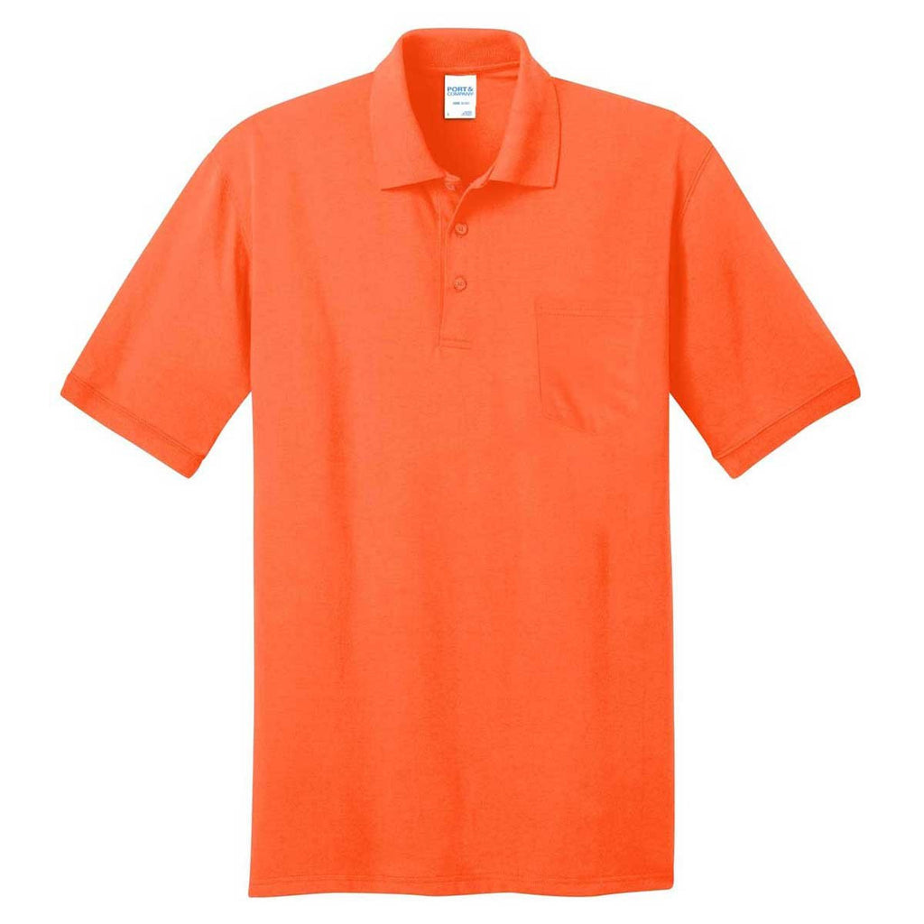 Inspired by minimalist architecture, this Port & Company Men's Safety Orange Core Blend Jersey Knit Pocket Polo is a great answer to warm-weather uniforming shirts. It boasts a lightweight and comfortable construction with a balanced cotton-polyester blend. A pocket adds character to this casual polo while a 3-button placket ensures comfort fit. It can be easily paired with contrasting chinos, cargoes or denim for an effortless look and style. Double-needle stitching hem means durability. Spruce up your company's professionalism by having your logo on this polo that lets individuals know who to contact if they’re interested in reaching out to your business.