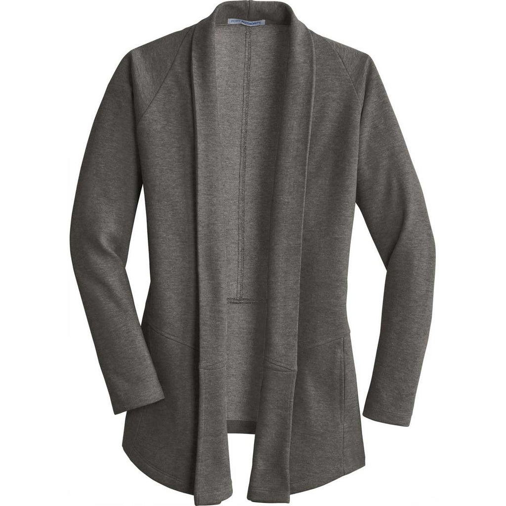 When you want to make a stylish fashion statement, putting on a cardigan sweater typically presents a clear message that you're serious about your wardrobe. However, you haven't made a strong cardigan fashion statement until you put on the Port Authority Ladies Charcoal Heather/Medium Grey Heather Interlock Cardigan. The lightweight cardigan contains two attractive interlocked colors that complement the rest of your outfit. Raglan sleeves and a shawl collar punctuate the sleek design of a cardigan that provides you with fashion versatility. Attach your corporate logo to the cardigan and watch awareness of your company soar.
