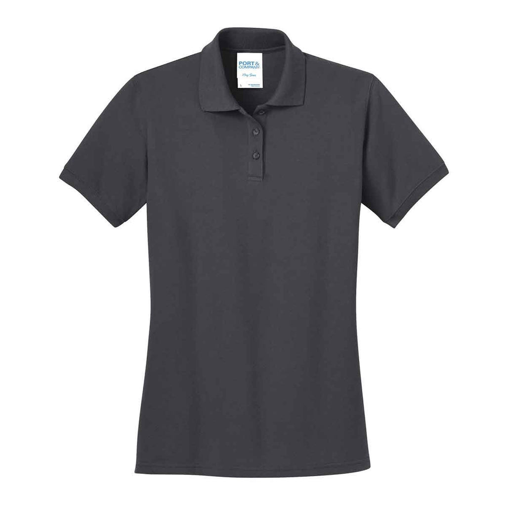 This Port & Company Women's Charcoal Ring Spun Pique Polo brims with classic appeal. Pure ring spun cotton feels luxurious and a comfortable contoured fit makes it the perfect option for a girl on the move. Timeless polo details like button placket, dyed-to-match buttons, ribbed collar and cuffs bring sweet appeal and day-long comfort. It features double-needle stitching for durability. Treated with Soil Release finish for easy cleanups. Outfit this classic polo with a customized logo to promote the corporate identity of your company or organization to make your uniformed crew stand out from the crowd and to gain brand consistency and credibility.