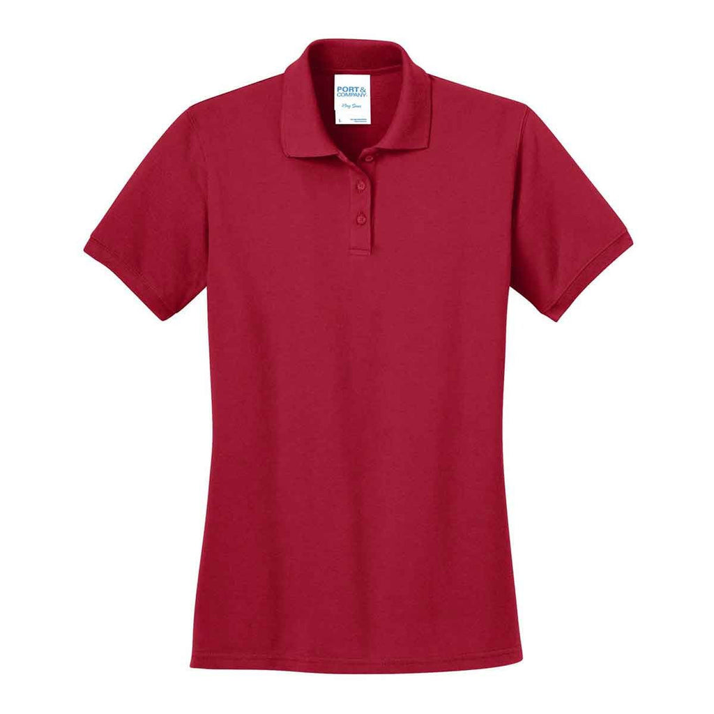 This Port & Company Women's Red Ring Spun Pique Polo brims with classic appeal. Pure ring spun cotton feels luxurious and a comfortable contoured fit makes it the perfect option for a girl on the move. Timeless polo details like button placket, dyed-to-match buttons, ribbed collar and cuffs bring sweet appeal and day-long comfort. It features double-needle stitching for durability. Treated with Soil Release finish for easy cleanups. Outfit this classic polo with a customized logo to promote the corporate identity of your company or organization to make your uniformed crew stand out from the crowd and to gain brand consistency and credibility.