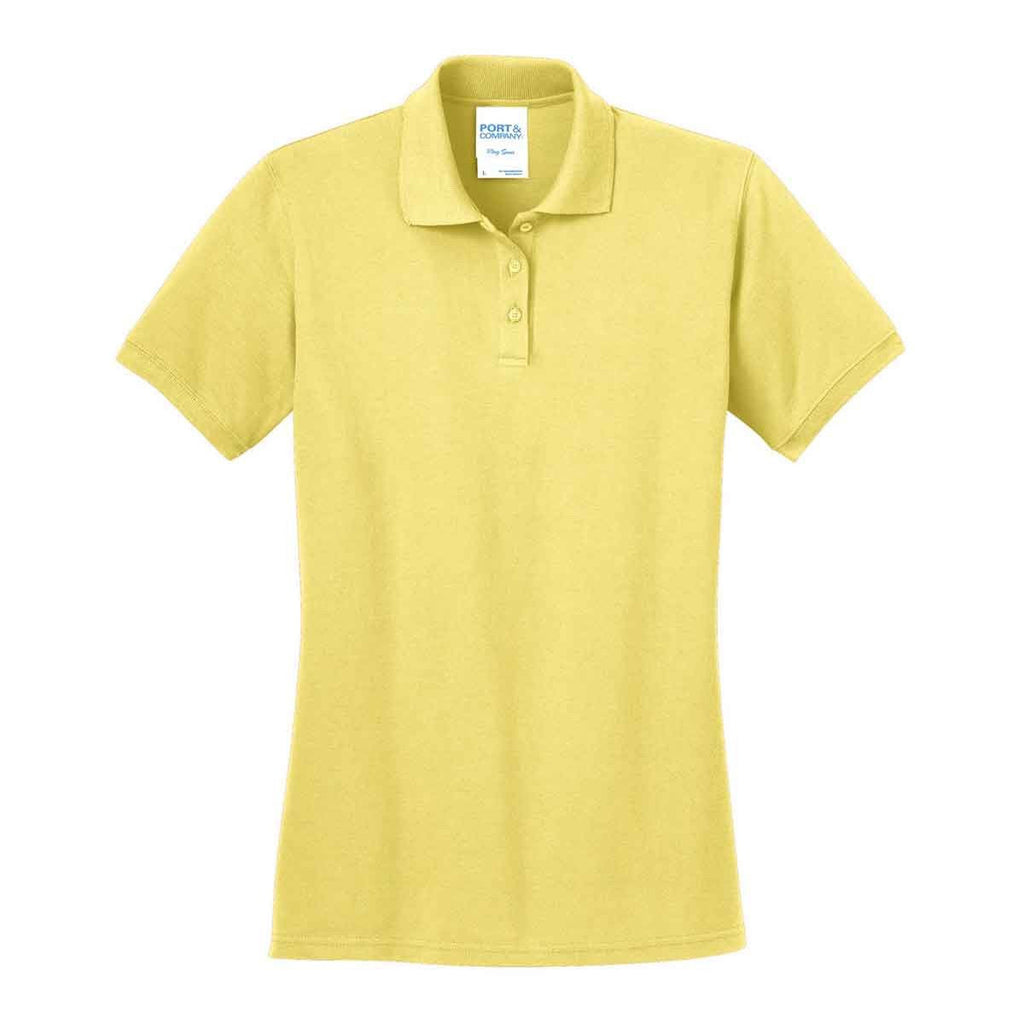 This Port & Company Women's Yellow Ring Spun Pique Polo brims with classic appeal. Pure ring spun cotton feels luxurious and a comfortable contoured fit makes it the perfect option for a girl on the move. Timeless polo details like button placket, dyed-to-match buttons, ribbed collar and cuffs bring sweet appeal and day-long comfort. It features double-needle stitching for durability. Treated with Soil Release finish for easy cleanups. Outfit this classic polo with a customized logo to promote the corporate identity of your company or organization to make your uniformed crew stand out from the crowd and to gain brand consistency and credibility.