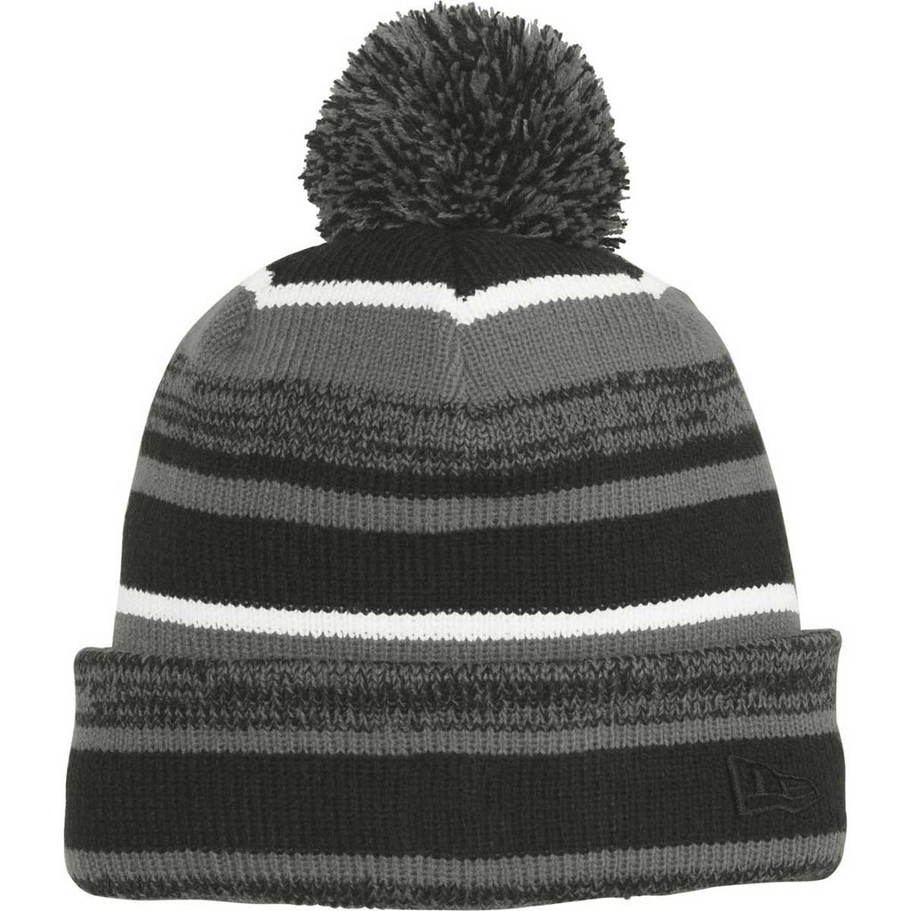Don't sit on the sidelines when it's time to make a strong fashion statement at an outdoor athletic competition. Wear the sleek New Era Black/Graphite Sideline Beanie and expect people to come and ask, "Where did you get that beanie." With multiple colored heather stripes that evoke fond memories of winter, the beanie contains a polyester fleece lining that keeps your ears warm. The 100% acrylic shell handles everything Old Man Winter dishes out, including sleet pellets and wet, heavy snow. Attach your corporate logo to the beanie to let everyone know that your company stands for quality and innovation.