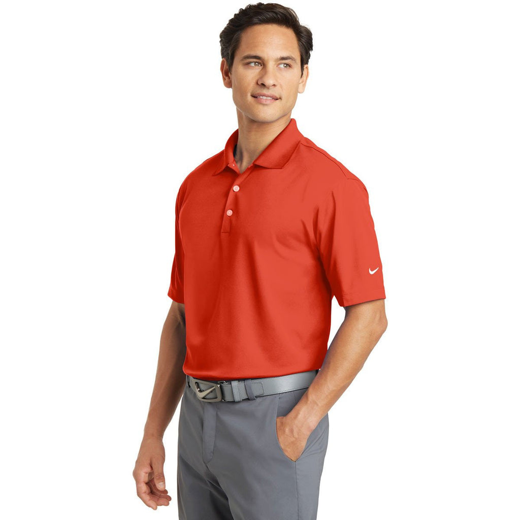 The Nike Golf Dri-FIT Orange Micro Pique Polo has been made with a pique knit Dri-FIT fabric that will keep the wearer dry and cool. The design also features a flat knit collar, three-button placket, open hem sleeves, and the classic contrast Swoosh is embroidered on the left sleeve. Not only is it a great golf shirt, but it would be perfect for everyday wear as well.